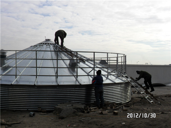 1、通風系統(tǒng),倉頂安裝自然通風窗、引風機,錐底安裝鼓風機,引流空氣到倉內(nèi)循環(huán),保護糧食不受潮,極大的保證了倉內(nèi)糧食的質(zhì)量。