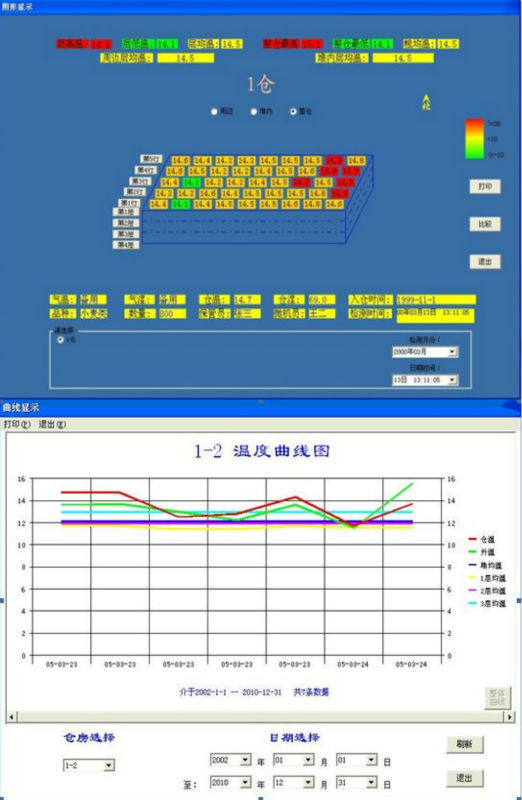 TSE-8型糧情測控系統經過不斷完善和改進,克服了干擾、雷電感應 高溫、高濕及腐蝕性氣體對電子線路所造成的一系列損害, 完善了外濕、倉濕的檢測。巡測速度大幅度提高。豐富了圖形顯示及曲線顯示。良好的界面設計使得操作更加簡單。