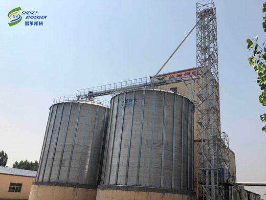 雪萊鋼板倉廠家回訪東平飼料廠水泥錐底鋼板倉
