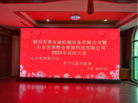同心筑夢,未來啟程!1月17日在泰安瑞庭酒店,雪萊糧倉召開了泰安雪萊倉儲機械設備有限公司暨、山東雪萊糧倉智能科技有限公司2022年總結大會,雪萊糧倉董事長靳傳麗,生產部總經理張玉峰,安裝部總經理劉大云,以及來自雪萊糧倉生產、技術、行政、財務、采購、銷售等各個部門的領導出席了此次年會。雪萊人用辛勤的雙手在2022年書寫下壯美華章,以實際行動助力糧食高質高效的存儲與安全,推動中國農業持續發展的使命。2023年雪萊糧倉將繼續砥礪前行,踔厲奮發!