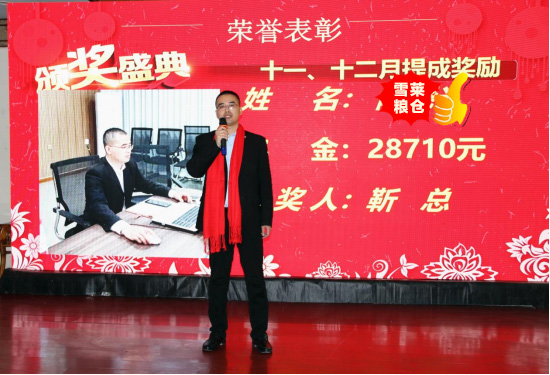 雪萊糧倉對2022年第四季度先進個人進行了表彰,并發放現金獎勵,鼓舞全員開拓創新、銳意進取。雪萊糧倉為全員發放過年現金紅包福利,感謝全體雪萊人在2022年這不平凡的一年中舍小家、顧大家、有擔當、甘奉獻,在疫情肆虐時保證了各項業務的有序開展,把公司發展推向一個新高度。